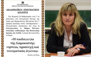 Μητρόπολη – «Ακαδημαϊκοί – Πνευματικοί Διαλόγοι»: H επίκουρος καθηγήτρια της Θεολογικής Σχολής Μαρία Ράντζου, ομιλήτρια την Κυριακή 15 Φεβρουαρίου