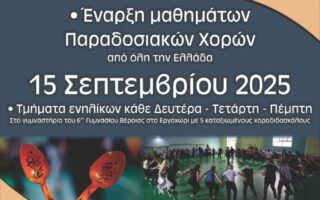 Βέροια – “Ηλιοείδεια”: Έναρξη μαθημάτων Παραδοσιακών Χορών / Δευτέρα 15 Σεπτεμβρίου 2025